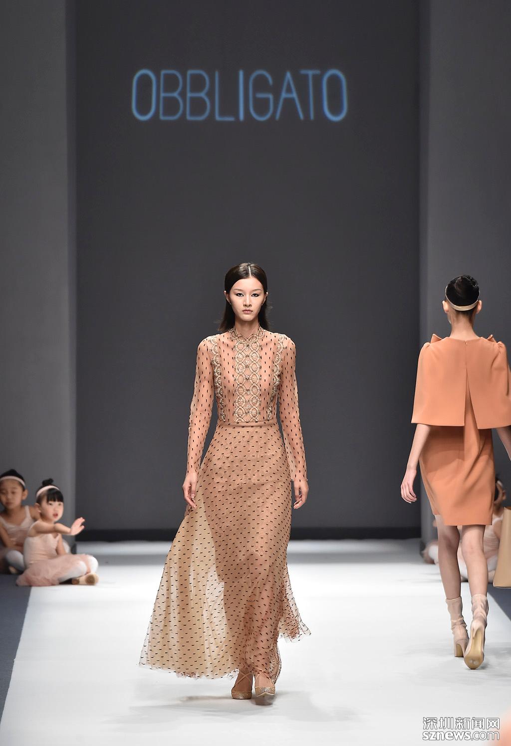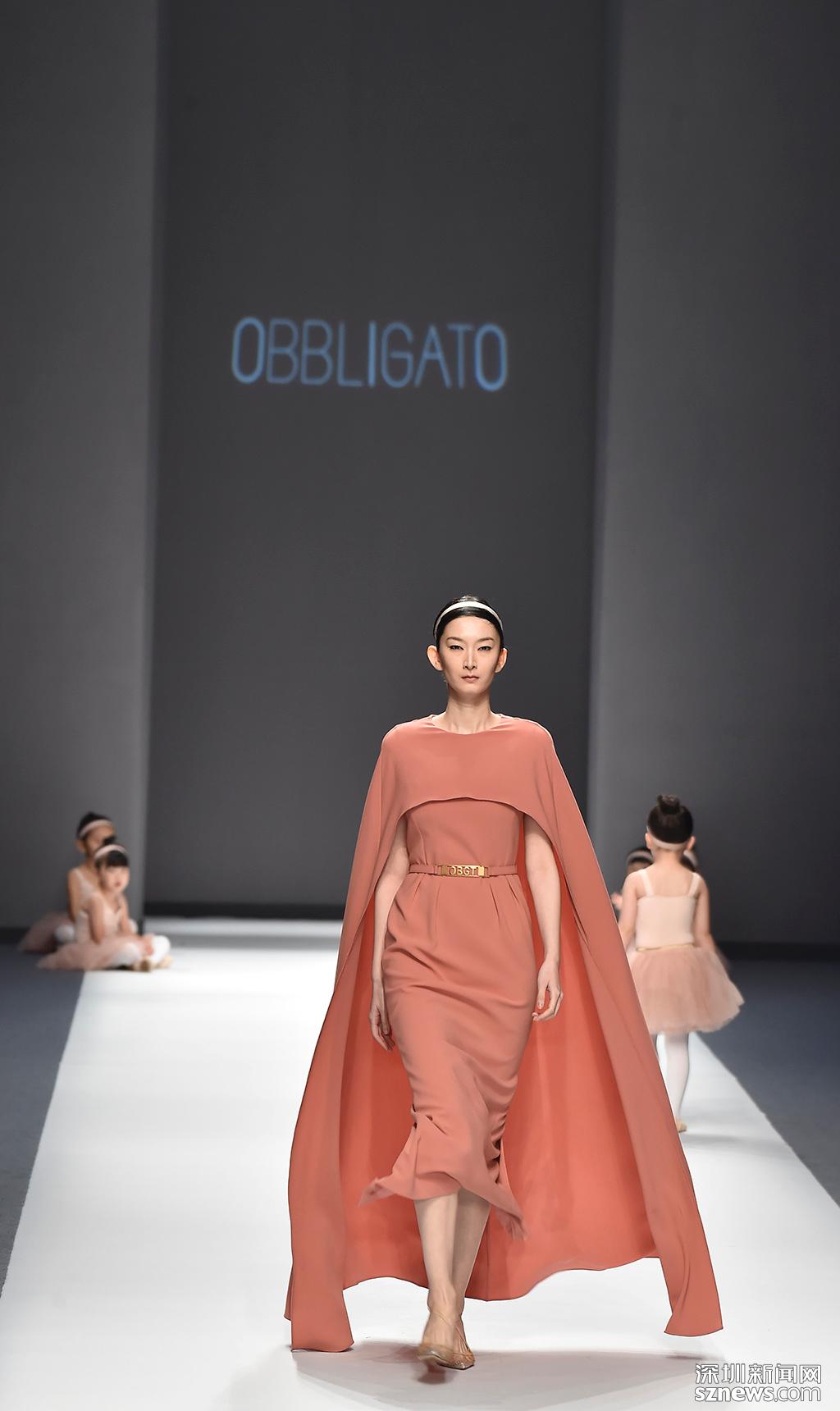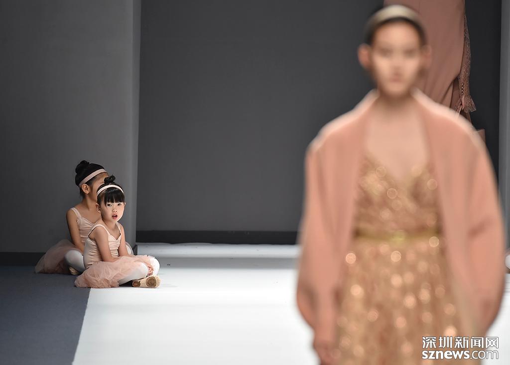 品牌OBBLIGATO展示環(huán)節(jié),參展的一位小孩子望向正在走臺(tái)的模特