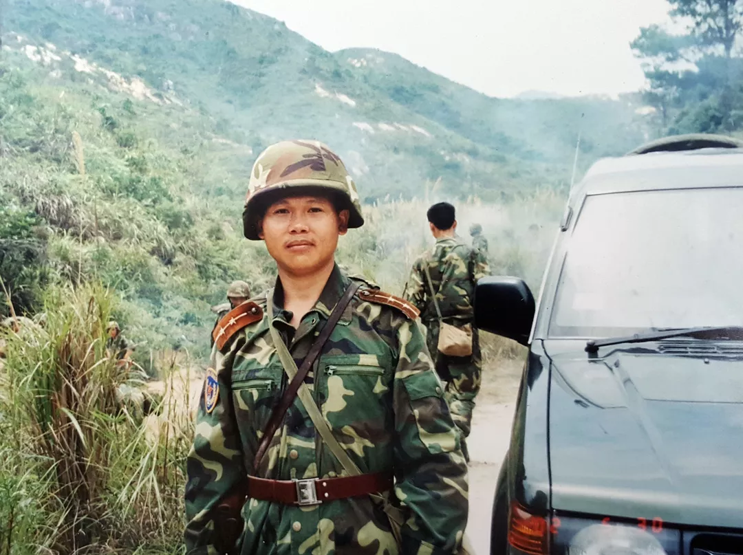 駐港四年,他當(dāng)過(guò)連隊(duì)指導(dǎo)員、帶過(guò)新兵、參加過(guò)重大保障工作。駐港部隊(duì)對(duì)指戰(zhàn)員的要求極其嚴(yán)格,就算在軍營(yíng)里走路,也要保持著“兩人成行、三人成列”的自覺(jué)。他作為指導(dǎo)員,更是嚴(yán)于律己,言行如一,做出表率。