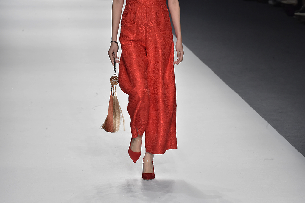 服裝特寫(xiě) 紅色的搭配盡顯東方美感