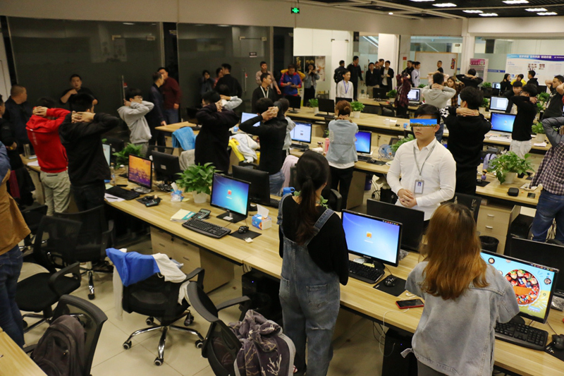 11時(shí)25分,記者離開(kāi)隱蔽位置隨指揮部進(jìn)入現(xiàn)場(chǎng)。11時(shí)30分,100余名便衣民警分多路將抓捕現(xiàn)場(chǎng)團(tuán)團(tuán)圍住。隨著指揮員一聲令下,便衣民警們一擁而上,一舉將這個(gè)騙子公司老巢徹底搗毀。