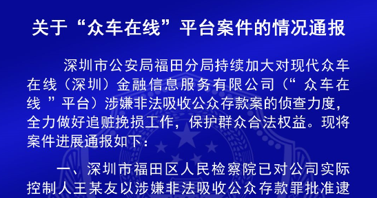 關于“眾車在線”平臺的案件情況通報 ...