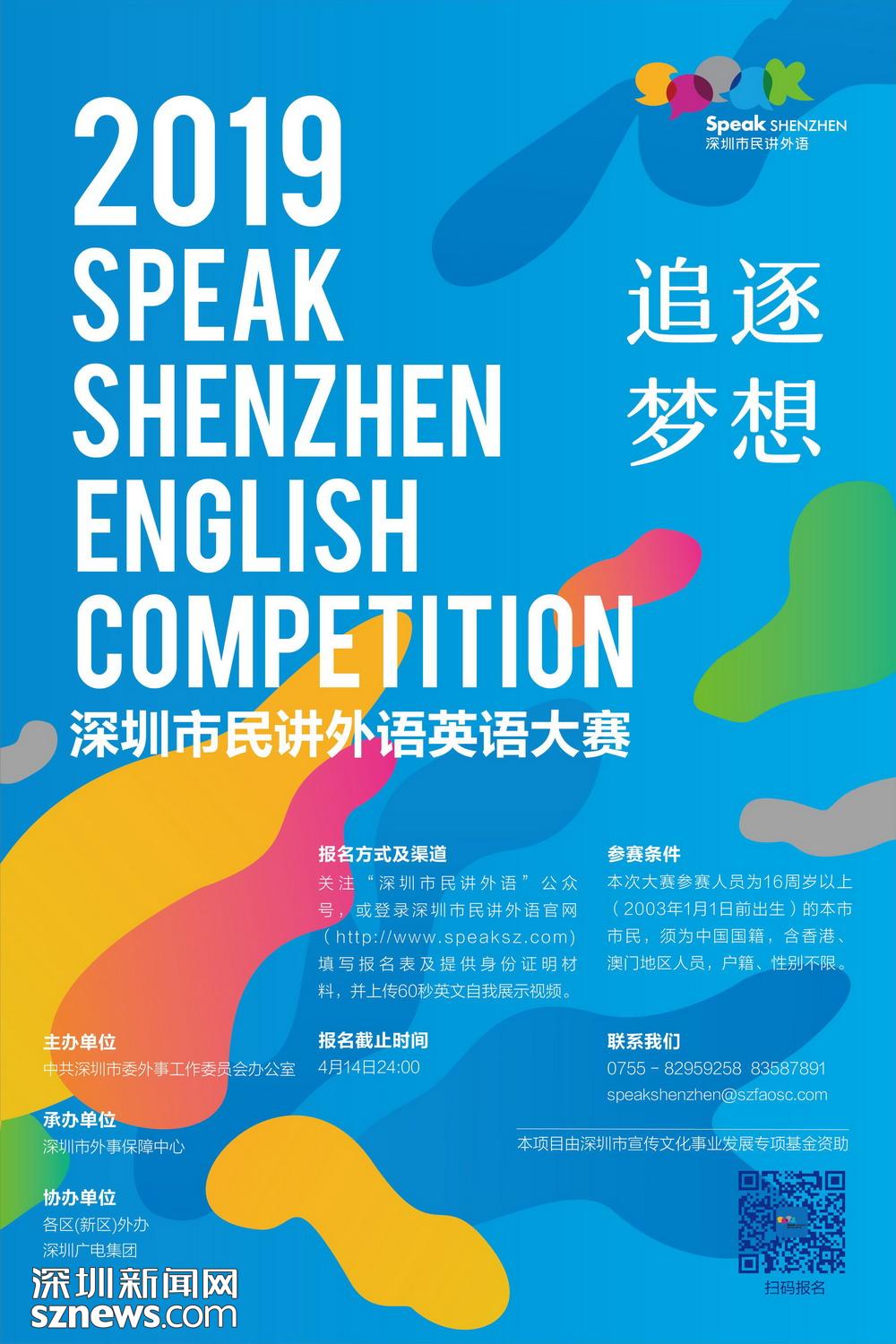 由中共深圳市委外事工作委員會辦公室主辦、深圳市外事保障中心承辦的2019“深圳市民講外語”英語大賽已正式啟動。記者了解到,本次大賽參賽人員為16周歲以上(2003年1月1日前出生)的本市市民,須為中國國籍,含香港、澳門地區(qū)人員。有意參加比賽的市民需在4月14日24:00前關(guān)注“深圳市民講外語”公眾號或登錄深圳市民講外語官網(wǎng)(http://www.speaksz.com)填寫報名表及提供身份證證明材料,并上傳60秒英文自我展示視頻,完成報名。