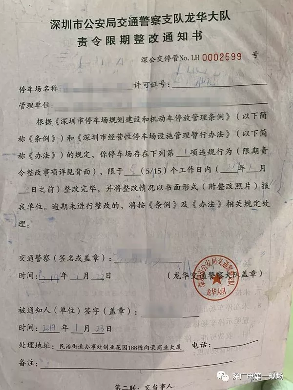 根據(jù)《深圳市停車場(chǎng)規(guī)劃建設(shè)和機(jī)動(dòng)車停放管理?xiàng)l例》和《深圳市經(jīng)營性停車場(chǎng)設(shè)施管理暫行辦法》的規(guī)定龍華交警依法沒收該停車場(chǎng)非法所得51182元,處罰款5000元,并開具整改通知書,要求該酒店限期內(nèi)進(jìn)行整改。