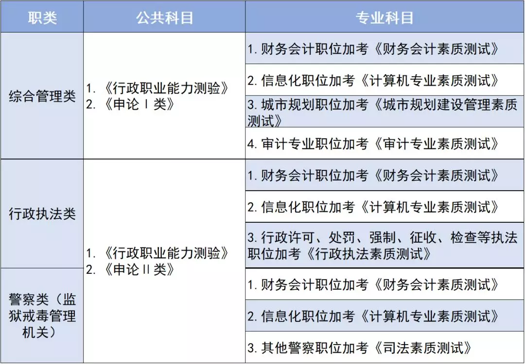 筆試科目按不同職位分別設(shè)置