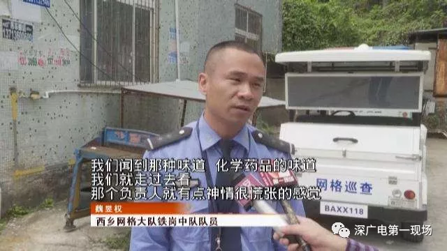晚上8點30分,寶安西鄉(xiāng)鐵崗網(wǎng)格巡查中隊網(wǎng)格員在轄區(qū)一工業(yè)園夜巡時發(fā)現(xiàn)一輛貨車正在一倉庫門口卸貨。網(wǎng)格員發(fā)現(xiàn),工人們將一個個大鐵桶和塑料桶搬進(jìn)旁邊的一個倉庫,現(xiàn)場散發(fā)出一股刺鼻的氣味。