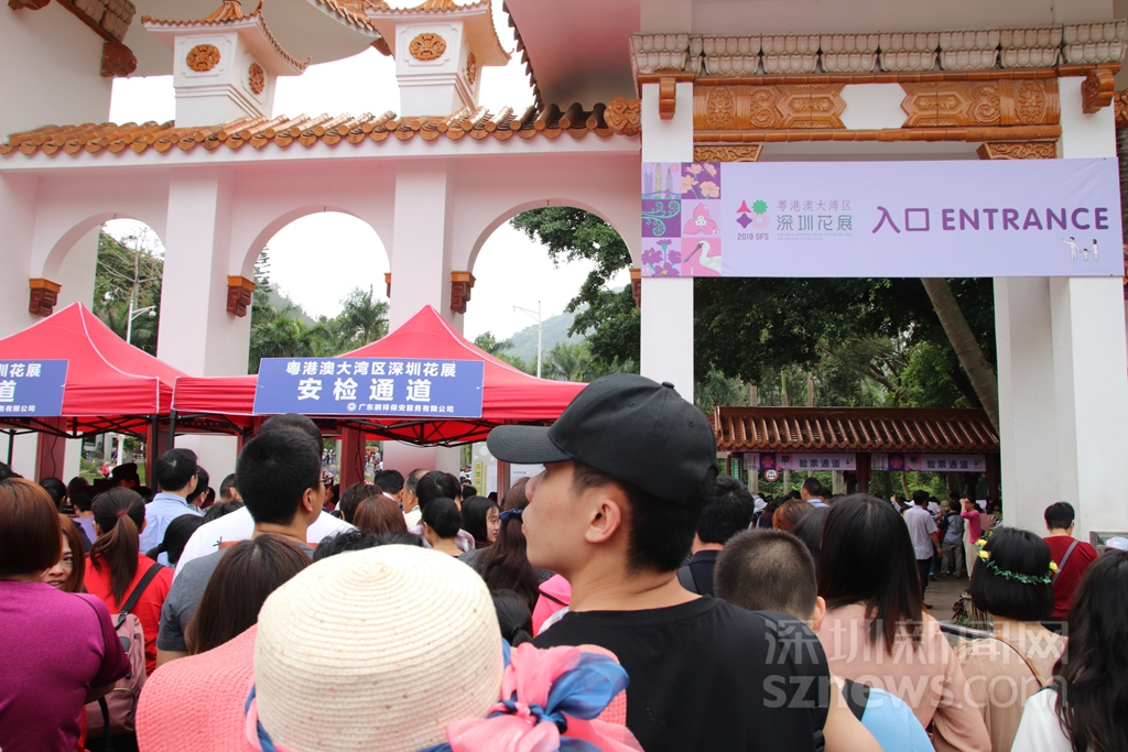 仙湖植物園入口處,排隊的人需經過安檢,再進入檢票通道