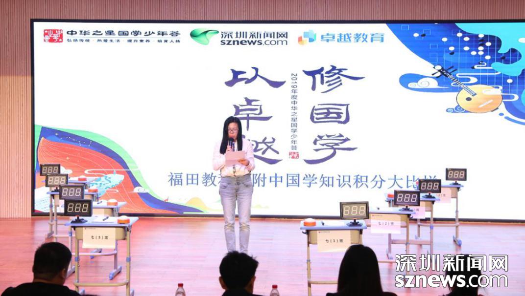 深圳新聞網(wǎng)4月2日訊 (記者 曹園芳 陳彬)修國(guó)學(xué),以卓越。4月1日下午,福田區(qū)教育科學(xué)研究院附屬中學(xué)(以下簡(jiǎn)稱“福田教科院附中”)舉行國(guó)學(xué)知識(shí)積分大比拼活動(dòng),該活動(dòng)是“2019年度中華之星國(guó)學(xué)少年薈”的校園分會(huì)場(chǎng)活動(dòng)之一,深圳地區(qū)是由深圳新聞網(wǎng)主辦,卓越教育承辦。