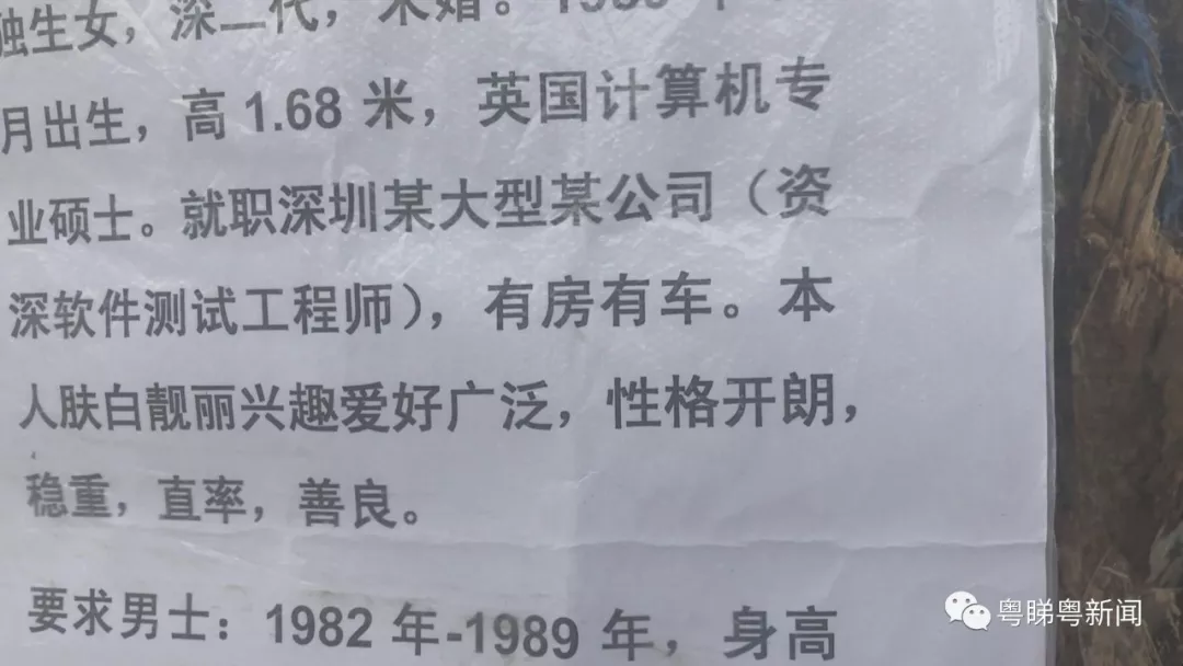 婚介:有 這個就像明星 你看這個不會不像(明星) 比明星還漂亮 這個就要求高 房子在深圳要200多平方 100多(平方)的還不夠啊 你要明星人家的要求也高