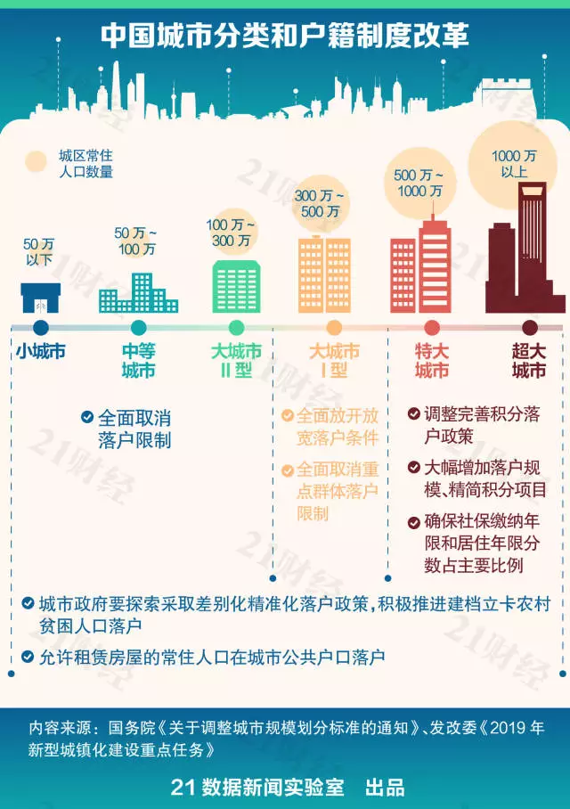 4月8日,國家發(fā)展改革委官網(wǎng)發(fā)布了《2019年新型城鎮(zhèn)化建設(shè)重點(diǎn)任務(wù)》(以下簡稱《任務(wù)》)的通知。通知指出,要繼續(xù)加大戶籍制度改革力度,在此前城區(qū)常住人口100萬以下的中小城市和小城鎮(zhèn)已陸續(xù)取消落戶限制的基礎(chǔ)上,城區(qū)常住人口100萬—300萬的Ⅱ型大城市要全面取消落戶限制;城區(qū)常住人口300萬—500萬的Ⅰ型大城市要全面放開放寬落戶條件,并全面取消重點(diǎn)群體落戶限制。