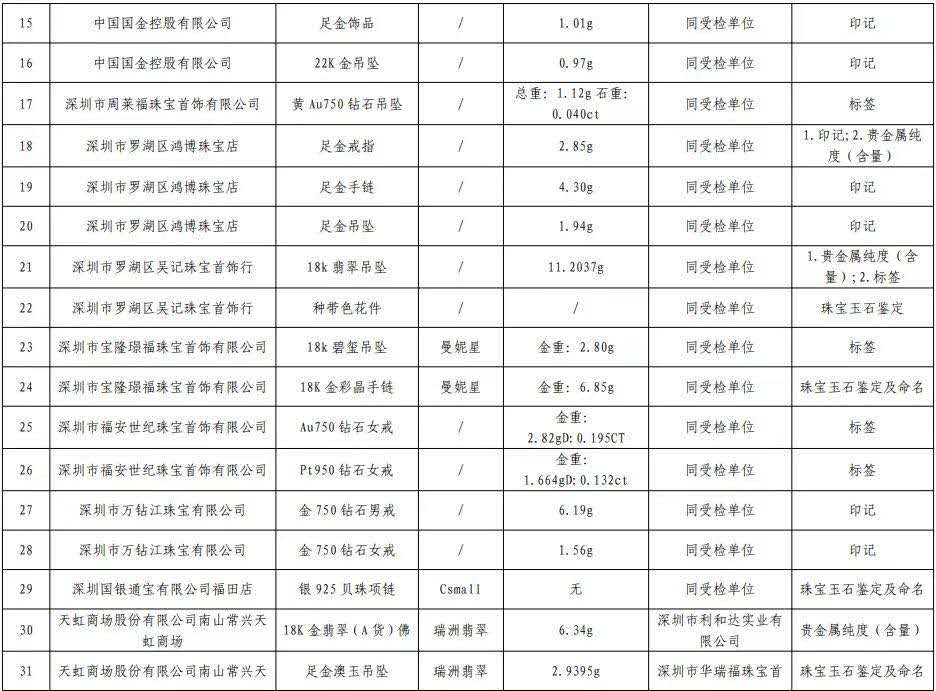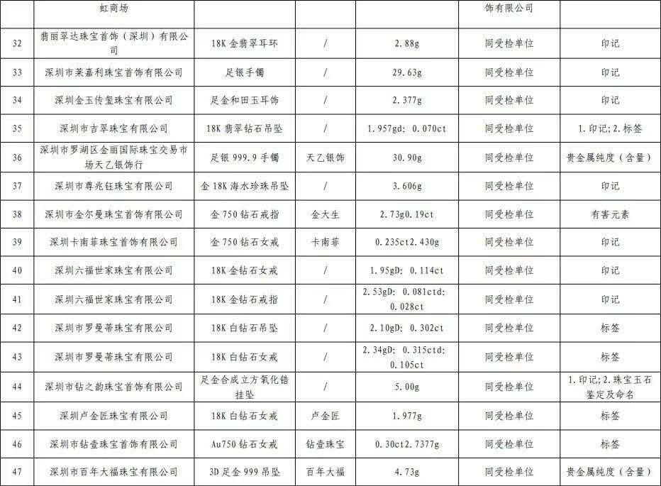 原標題:深圳最新抽檢珠寶抽檢結(jié)果公布,不合格產(chǎn)品發(fā)現(xiàn)率16.3%