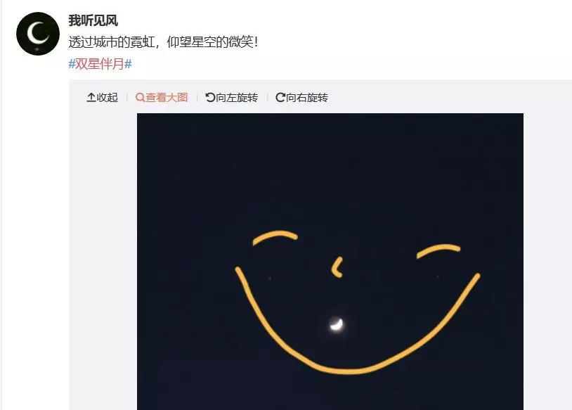 月亮在天宇中“行走”的過程中有時(shí)會(huì)路過某顆較亮的恒星或行星身邊,我們稱為“某星伴月”,例如我們常聽到或看到的“木星伴月”、“金星伴月”等等。