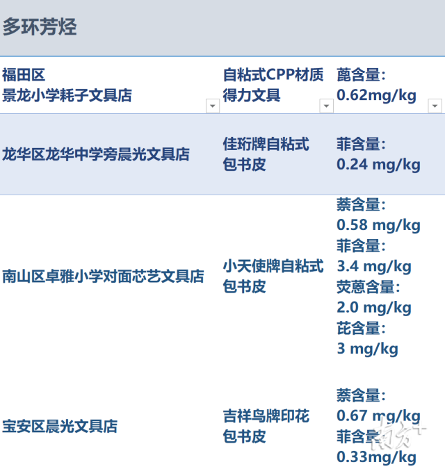 完成六區(qū)實(shí)地采樣后,南方+記者聯(lián)系到深圳市計(jì)量質(zhì)量檢測(cè)研究院(龍華基地),對(duì)9個(gè)品牌共14個(gè)包書(shū)皮樣品送檢,主要檢測(cè)項(xiàng)目為鄰苯二甲酸酯(俗稱(chēng)“增塑劑”)和多環(huán)芳烴(具有致癌性物質(zhì))。