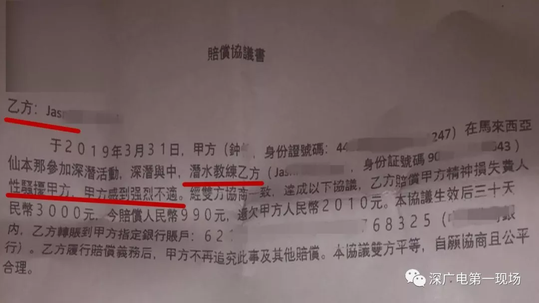 上了岸以后,氣憤的小鐘和小丹直接找到了旅行社負責(zé)人進行投訴。而旅行社進行調(diào)查后,發(fā)現(xiàn)該教練確實存在著性騷擾的行為,最后雙方達成了三千塊錢的賠償協(xié)議。