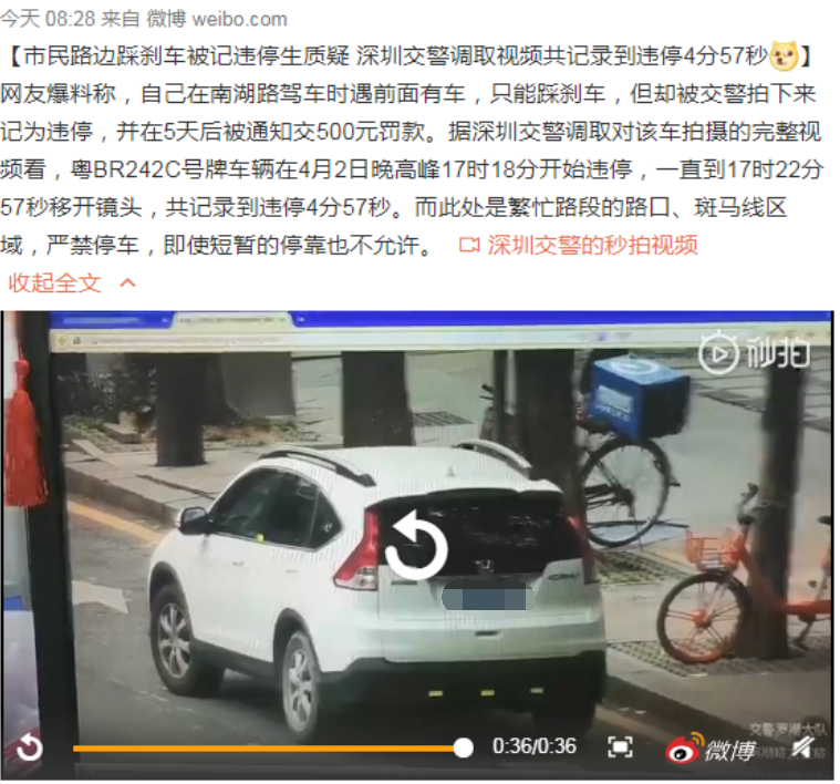 接舉報后,交警查看了監(jiān)控,發(fā)現(xiàn)該車輛違停近5分鐘……