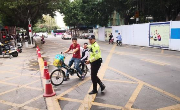 近日,深圳交警重點管理家長騎電動車接送學(xué)生不佩戴頭盔現(xiàn)象