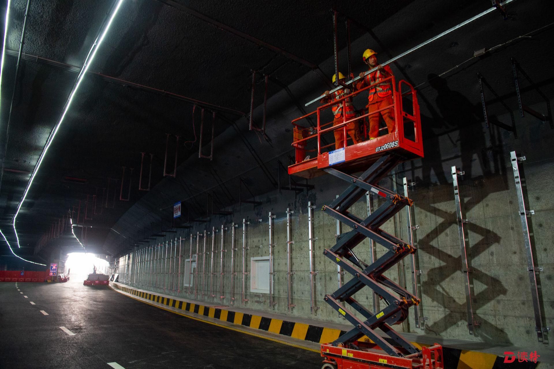 4月16日,讀特記者從臨海大道與前灣三路路口附近乘車進(jìn)入地下道路,看到前海地下道路已經(jīng)實(shí)現(xiàn)主體隧道貫通,項目進(jìn)入裝飾裝修和機(jī)電設(shè)備安裝階段,工人正在隧道內(nèi)安裝照明、通風(fēng)、排水、消防等設(shè)施。在項目工程樣版段,記者看到隧道兩側(cè)的已經(jīng)裝好搪瓷鋼板,頂部的連續(xù)燈帶和交通指示燈也已經(jīng)安裝到位,地面上也已經(jīng)劃好了分道線。中鐵四局機(jī)電公司相關(guān)負(fù)責(zé)人表示,目前前海地下道路機(jī)電裝修工程樣板已經(jīng)順利通過驗(yàn)收,為接下來大面積機(jī)電裝修施工提供了標(biāo)準(zhǔn)指引。該負(fù)責(zé)人表示:“全線共安排了一百多名工人,分區(qū)域進(jìn)行設(shè)備安裝和裝飾裝修,將確保項目年底竣工、2020年初通車,為前海發(fā)展提供更好交通保障?!?/p>