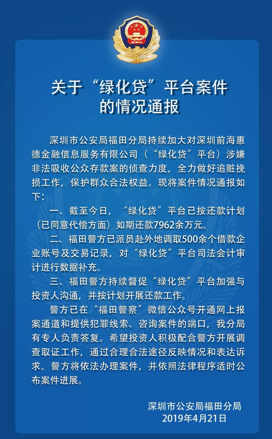 關(guān)于“綠化貸”平臺(tái)的案件情況通報(bào)