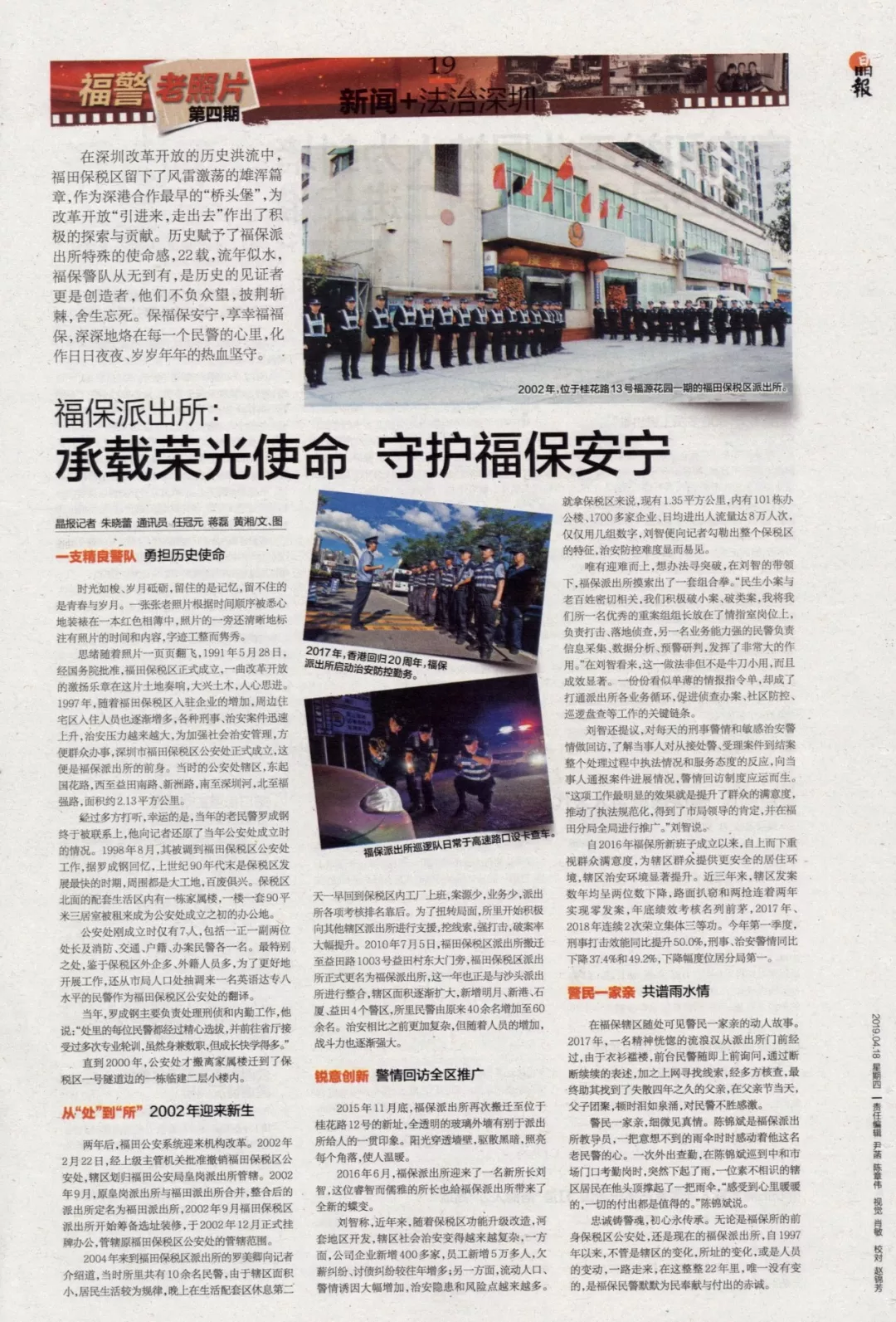 思緒隨著照片一頁頁翻飛,1991年5月28日,經(jīng)國務(wù)院批準(zhǔn),福田保稅區(qū)正式成立,一曲改革開放的激揚樂章在這片土地奏響,大興土木,人心思進(jìn)。1997年,隨著福田保稅區(qū)入駐企業(yè)的增加,周邊住宅區(qū)入住人員也逐漸增多,各種刑事、治安案件迅速上升,治安壓力越來越大,為加強(qiáng)社會治安管理,方便群眾辦事,深圳市福田保稅區(qū)公安處正式成立,這便是福保派出所的前身。當(dāng)時的公安處轄區(qū),東起國花路,西至益田南路、新洲路,南至深圳河,北至福強(qiáng)路,面積約2.13平方公里。