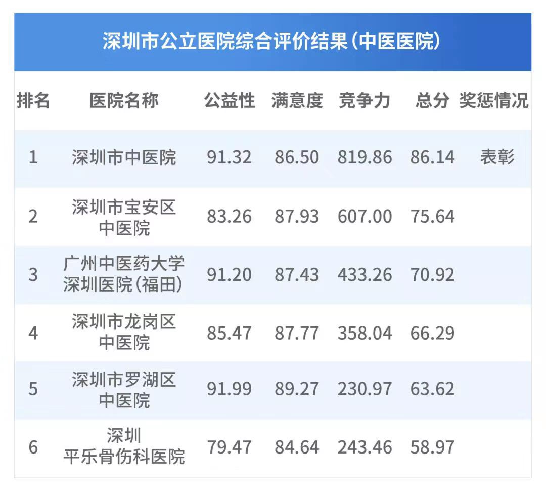 全市中醫(yī)院排名前三:深圳市中醫(yī)院、寶安區(qū)中醫(yī)院、廣州中醫(yī)藥大學(xué)深圳醫(yī)院;