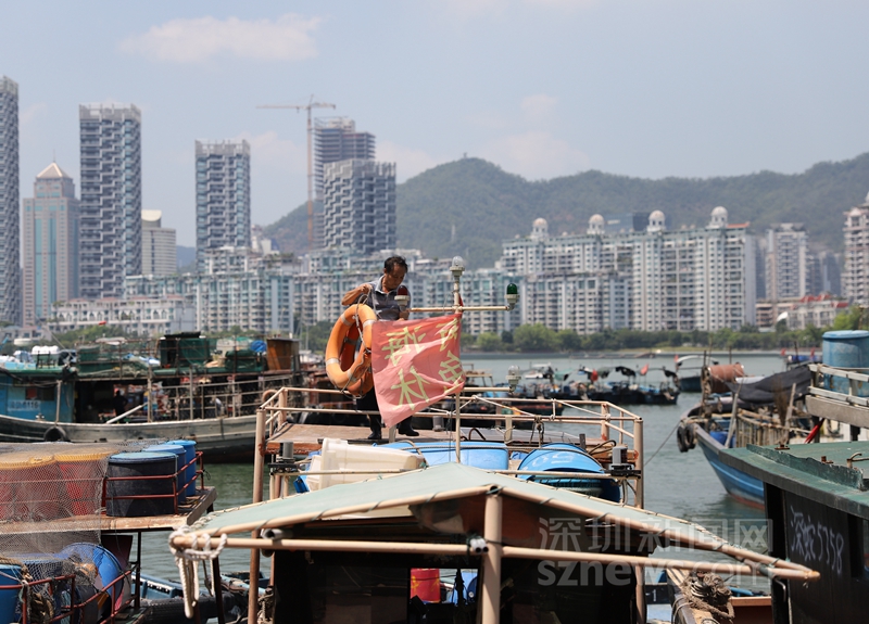 16時,深圳漁民回港口后整理船上的救生圈(楊浩翰 攝)