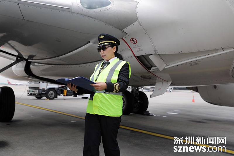 上午8時(shí),航班起飛前,飛行員崔陽按程序開展航前飛機(jī)檢查工作(