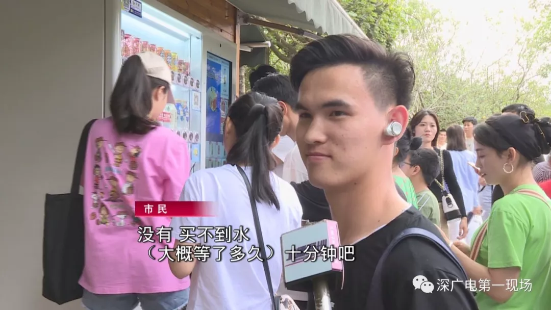 五一假期第一天,就有不少的市民朋友報料說,深圳灣公園人流爆棚,到處都是人擠人。下午5點,記者來到園區(qū)內(nèi)的自動售賣機旁,發(fā)現(xiàn)已經(jīng)擠滿了人,不少人正在排隊買水。