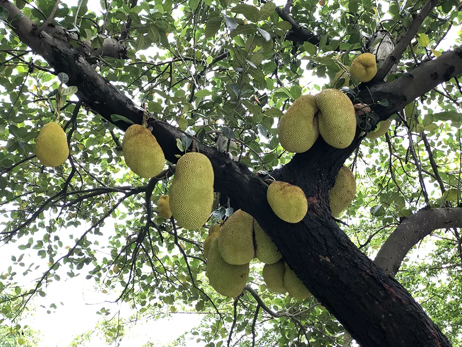 蛇口消息報2019年5月13日訊 日前,有居民向消息報反映,蛇口公園北路靠近蛇口體育中心一側幾百米的人行道上種植60余棵菠蘿蜜樹,樹上掛了不少果實,蔚為壯觀,儼然成為路上一景。不過也擔心碩大的菠蘿蜜會掉落砸傷路人。