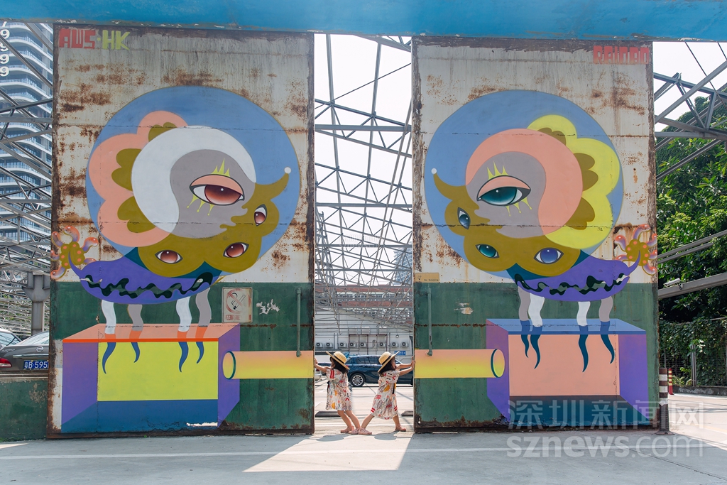 在城市公共空間中,涂鴉藝術(shù)不僅是一種重要的人文景觀,同時還能給人一種視覺享受,使單一的生活變得富有色彩。來自中國香港的全職藝術(shù)家彭怡擅長用涂鴉進行故事創(chuàng)作,帶來作品《雙觀》,以左右對稱相望的停車場守護神的形象感染車主與行人,傳達平穩(wěn)冷靜的力量。