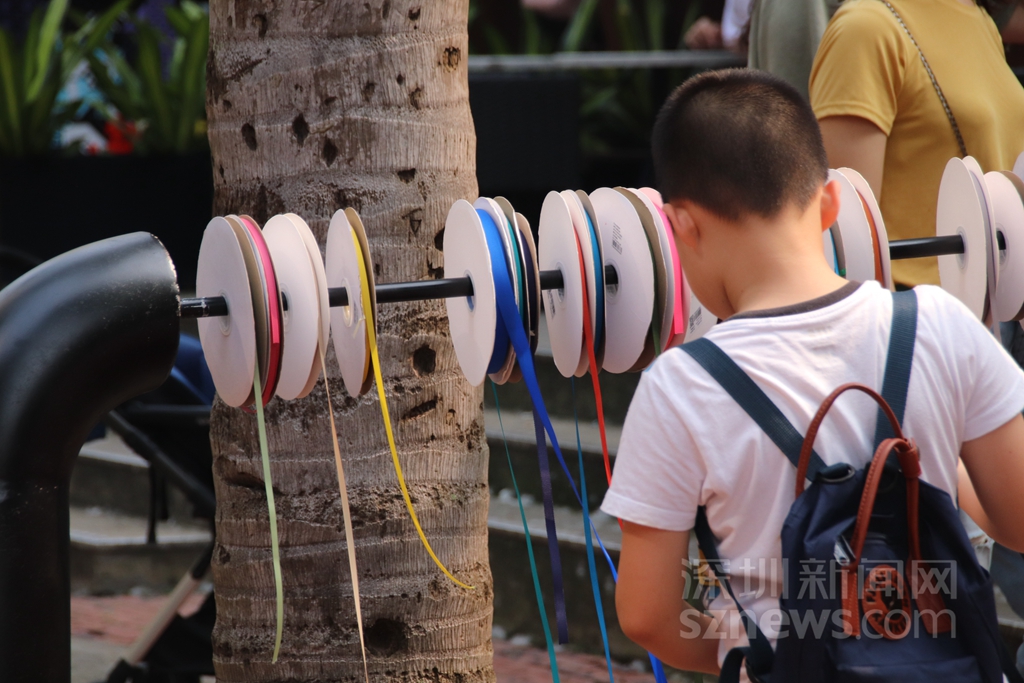 現(xiàn)場提供各種顏色的彩帶,供公眾選擇并纏繞到汽車上