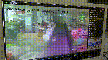 ▲視頻監(jiān)控顯示,女檔主一邊用手臂擋,一邊躲閃,無(wú)奈男子繼續(xù)發(fā)難,短短幾秒間,女檔主又被砍了數(shù)刀。