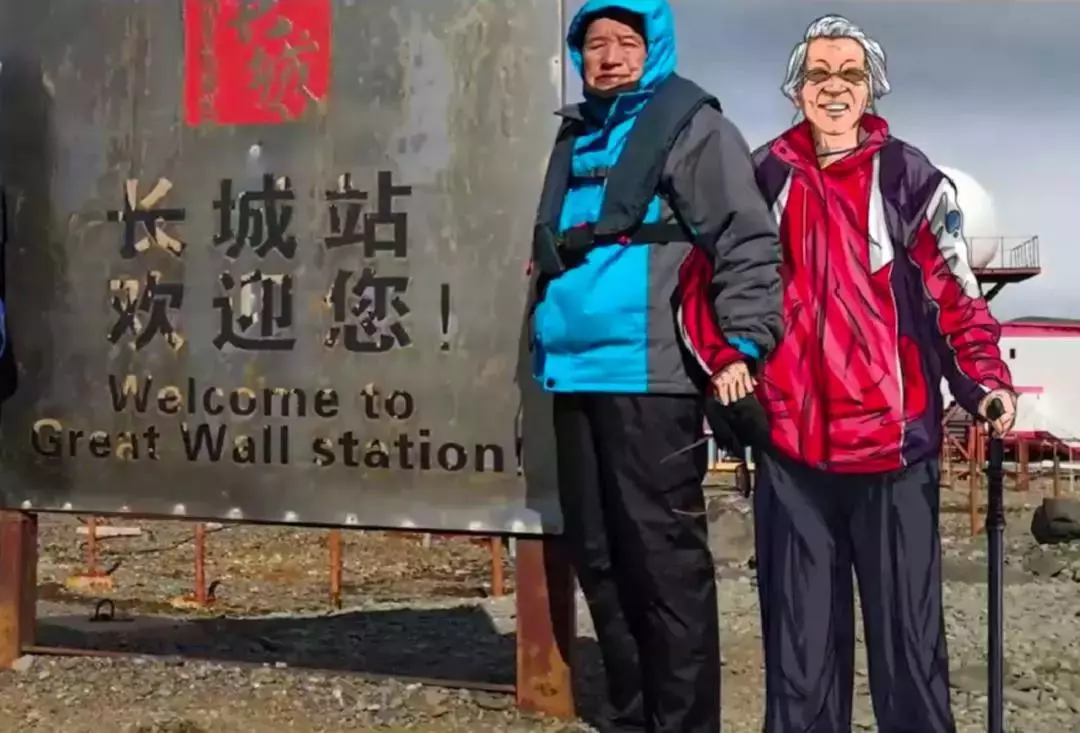 邱老帶著愛(ài)妻的照片登陸南極,