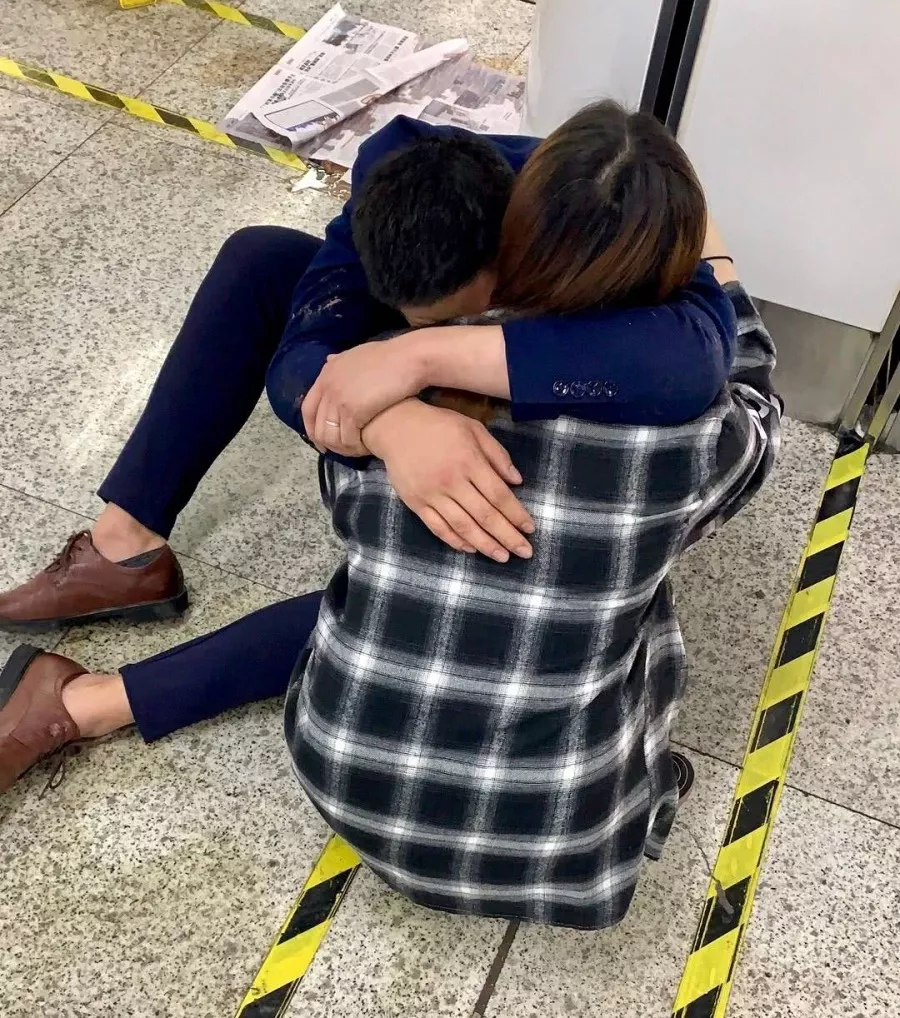 她不顧丈夫身上的污穢,