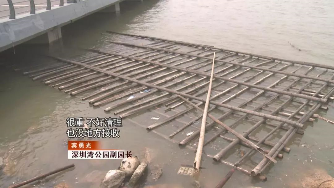 《第一現(xiàn)場》記者立馬跟進(jìn),找到了公園管理方。管理方表示,其實(shí)我們看到的才只是一小處,深圳灣沿岸十幾公里的范圍,每天都有不少竹排飄過來,不!過?。?!這些竹排卻不!是!源!自!深!圳!