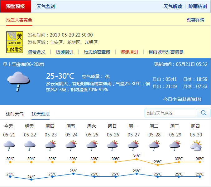 深圳市氣象臺自5月20日19時50分起,先后在全市陸地和海區(qū)發(fā)布雷電和暴雨黃色預(yù)警,并在光明、寶安和龍華發(fā)布暴雨橙色和紅色分區(qū)預(yù)警,這是今年首次發(fā)布暴雨紅色預(yù)警。本次降雨具有短時雨量大,持續(xù)時間短,雷暴密集等特點,5月20日19:00-5月21日00:00全市共記錄到772次雷電。