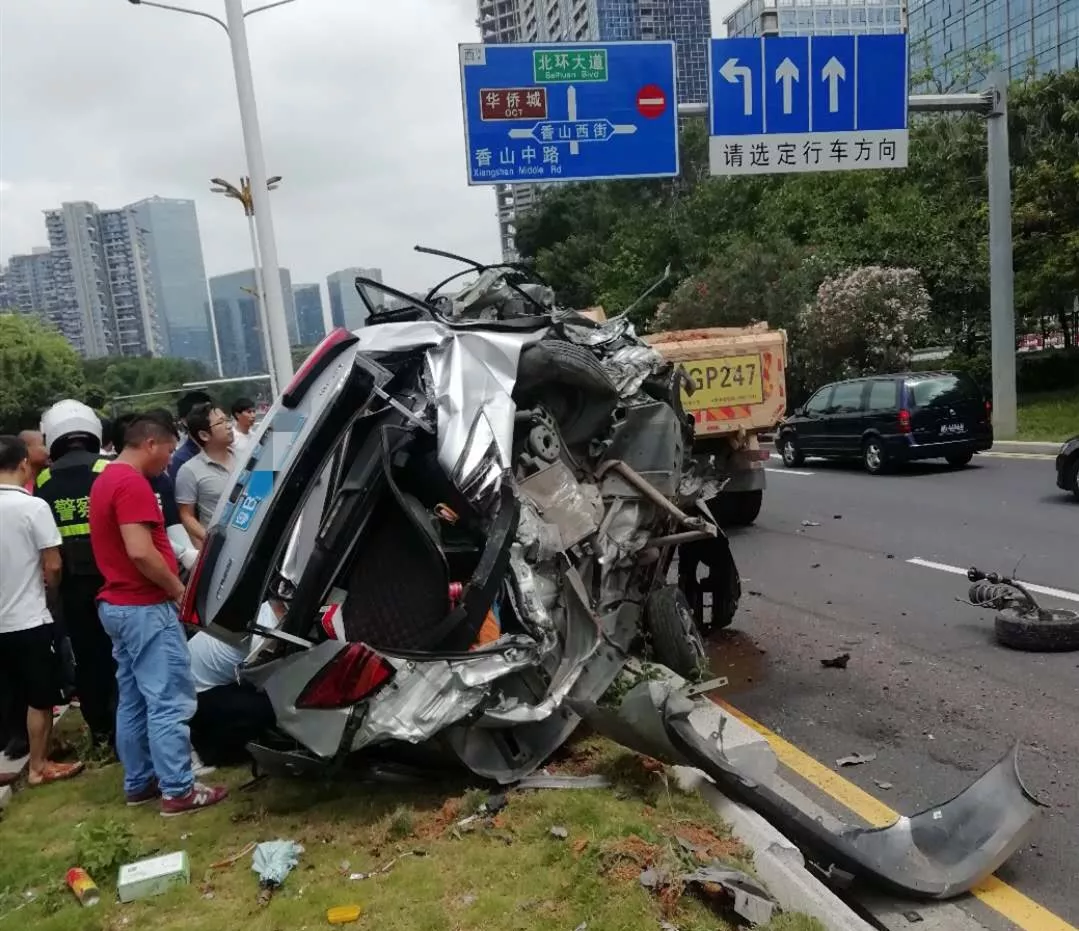 幾乎在同一時(shí)間段,又有觀眾在粉絲群發(fā)來(lái)報(bào)料說(shuō)在福田區(qū)僑香路又發(fā)生一起泥頭車撞小車事故,小車被撞得面目全非!