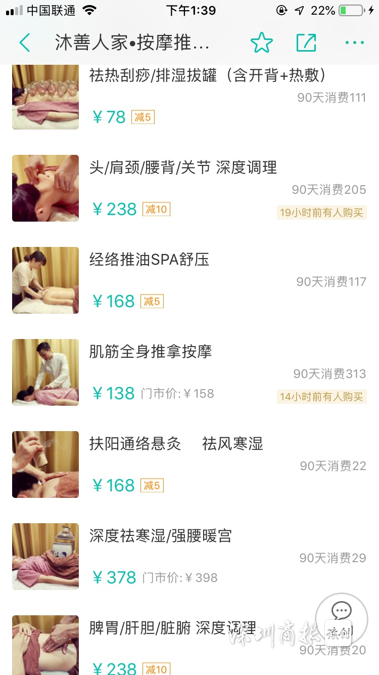 5月16日,55歲的劉女士通過(guò)美團(tuán)點(diǎn)評(píng)查詢(xún),發(fā)現(xiàn)一家五星"足療按摩人氣商戶(hù)"。下午3時(shí)許,劉女士來(lái)到深圳市福田區(qū)沐善人家按摩艾灸養(yǎng)生館新洲店進(jìn)行按摩。