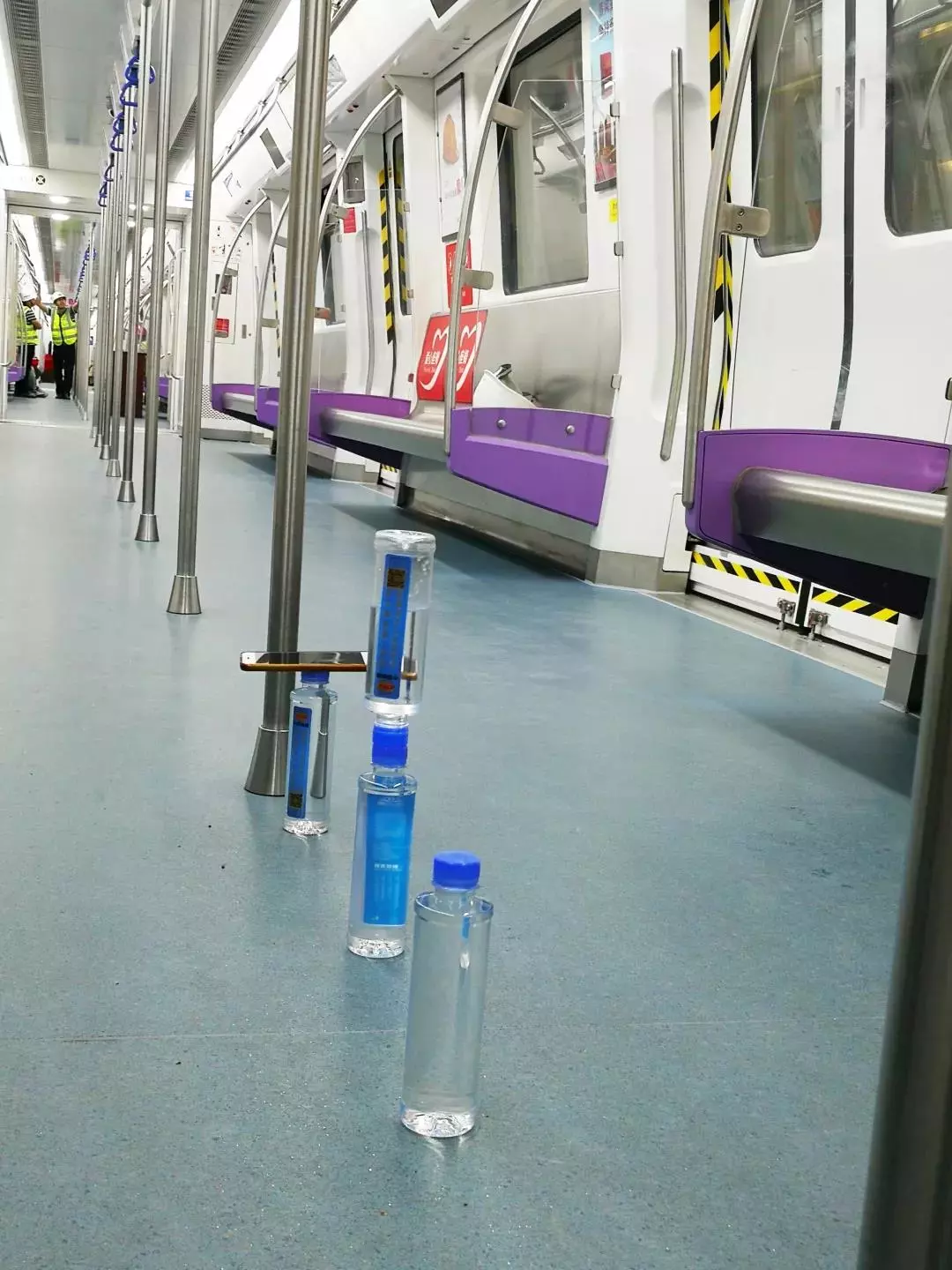 ▲列車(chē)運(yùn)行平穩(wěn),倒立的瓶裝水不倒
