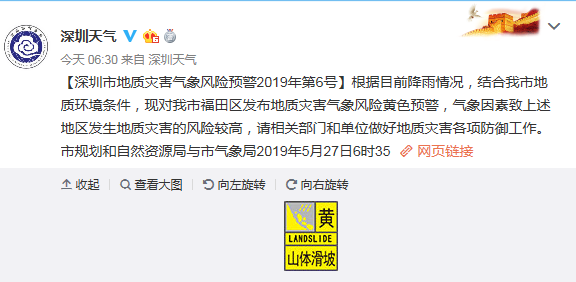 深圳市地質(zhì)災(zāi)害氣象風(fēng)險(xiǎn)預(yù)警2019年第6號
