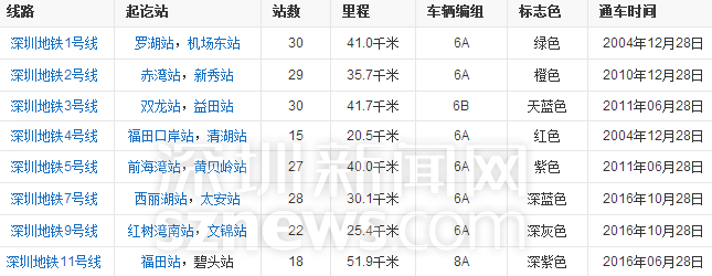 深圳地鐵目前正在運(yùn)營(yíng)的線路信息↑