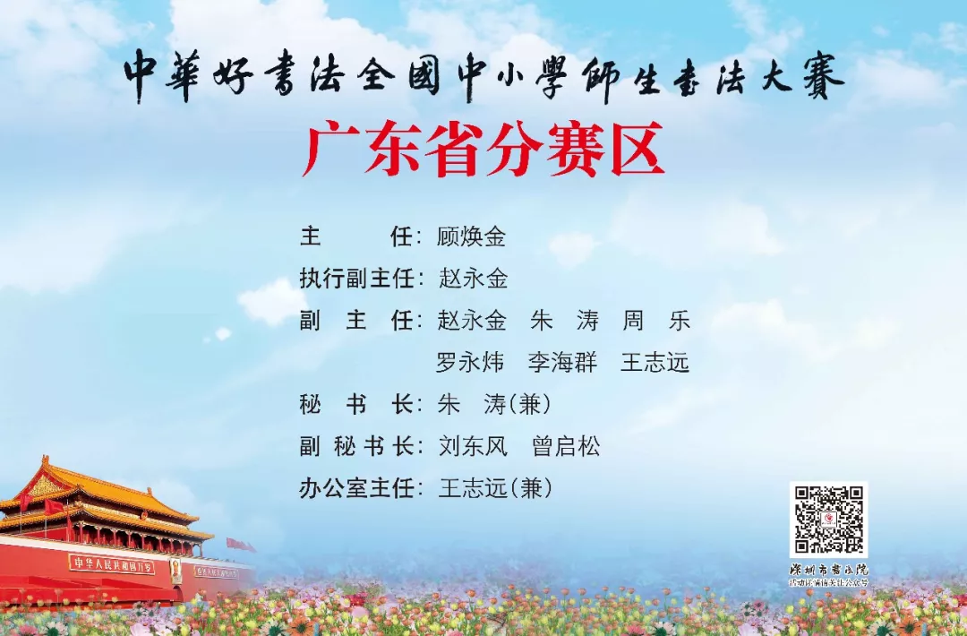 啟動儀式宣布成立“中華好書法”全國中小學師生書法大賽廣東省分賽區(qū)組委會、評委會和秘書處等工作機構。顧煥金任廣東省分賽區(qū)組委會主任,趙永金任廣東省分賽區(qū)組委會執(zhí)行副主任,朱濤、羅永煒、周樂、李海群、王志遠任廣東省分賽區(qū)組委會副主任,朱濤兼廣東省分賽區(qū)組委會秘書長,劉東風、曾啟松任廣東省分賽區(qū)組委會副秘書長,王志遠兼任廣東省分賽區(qū)組委會辦公室主任。