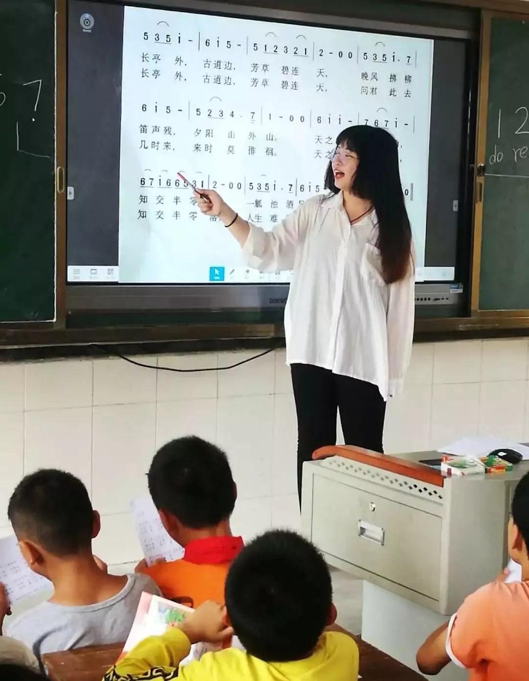 由于資源的缺乏,在平時的課堂中沒有專業(yè)老師及樂器去幫助他們糾正發(fā)音及音準(zhǔn)問題,只能憑借自己的感覺去唱歌。但在整節(jié)課的教學(xué)中,我發(fā)現(xiàn)部分孩子還是有很好的音準(zhǔn)意識,會盡量模仿老師發(fā)音去唱譜。如果能得到更多更好的教學(xué)資源,相信孩子們會更加熱愛音樂。