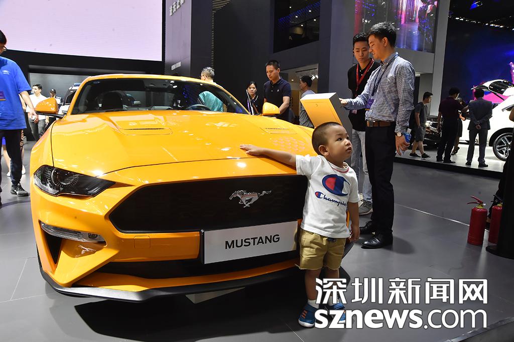 車展時逢周末,不少家長帶著自己的孩子前來參觀