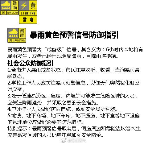 深圳新聞網(wǎng)2019年6月3日訊(記者 劉婷)預(yù)計全市3小時內(nèi)將出現(xiàn)30-50毫米降水,深圳市氣象臺于2019年06月03日05時10分在全市發(fā)布暴雨黃色預(yù)警,全市進入暴雨戒備狀態(tài),請學(xué)生和家長做好防雨防雷措施,雨急時就近避雨,上學(xué)途中注意交通安全。