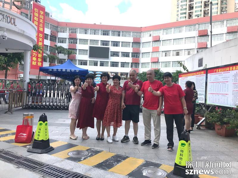 【翠園中學(xué)】門外的家長穿上紅衣為高考助力加油