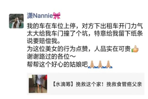 王女士發(fā)現(xiàn)自家車門處被撞了一個坑,