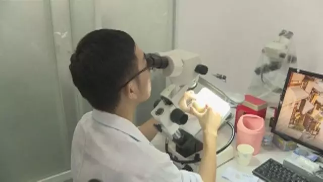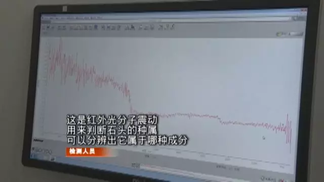 在記者說明來意后,工作人員接過單先生的石頭進(jìn)入實(shí)驗(yàn)室,首先用小電筒和寶石顯微鏡,進(jìn)行外觀檢測。然后將石頭放到這臺,叫“傅里葉變換紅外光譜”的儀器,檢測它的分子結(jié)構(gòu)。