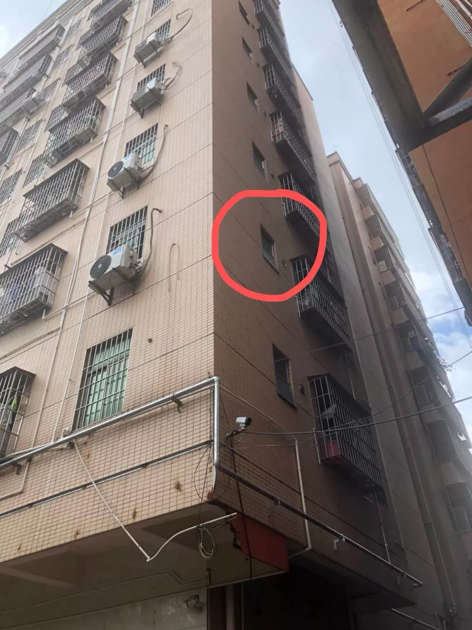 ▲紅圈處為女孩墜樓窗口