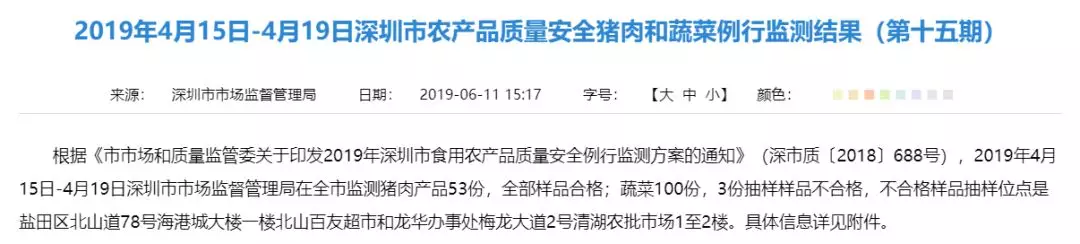 “2019食用農(nóng)產(chǎn)品抽檢第十五期”