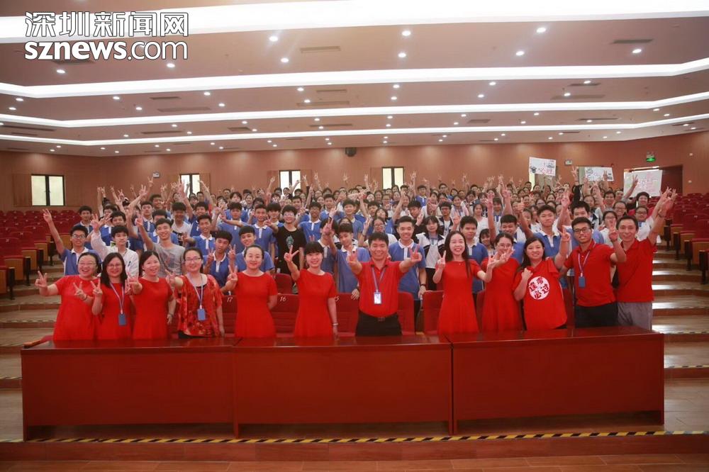 龍華區(qū)實驗學(xué)校的老師以及學(xué)生合影打氣,圖片攝于21日,由龍華區(qū)實驗學(xué)校的何小波老師提供。