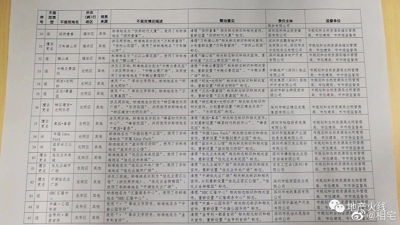 據(jù)了解,首批名單中,寶安是重災(zāi)區(qū),共有24個(gè)在列;光明7個(gè)、龍崗坪山羅湖均為6個(gè)、龍華5個(gè)、福田4個(gè)、南山2個(gè)、鹽田和大鵬均為1個(gè)。